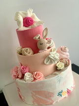 This adorable Nappy Cake is a perfect present for a baby shower or a gift to welcome the baby once it arrives.