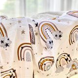 Our gorgeous swaddles are 100% organic cotton. They are soft, light weight and breathable. It features our unique prints making them the perfect gift for any occasion whether it's a baby shower or gift to welcome the newborn!
